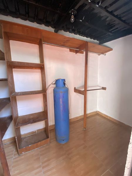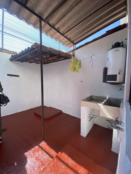 Cochera un auto, cuarto en planta baja, medio baño de visitas, comedor, cocina, área de lavandería con bodega