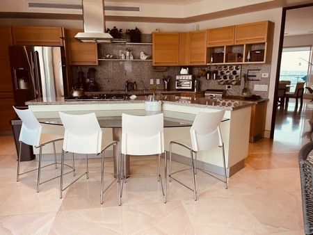 El departamento cuenta con medio baño de visitas, sala comedor, con terraza, cocina con barra desayunadora,