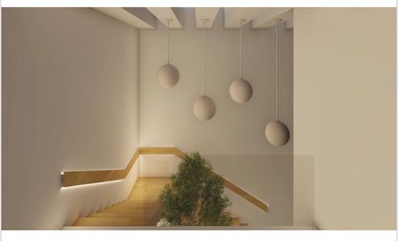 Entrada principal de 6 metros de altura, con cubo de luz en la escalera, teniendo detalles en madera de encino, tanto en plafones como en la escalera, haciendo el entorno muy cálido.