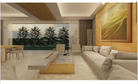 Gran recámara principal, iluminación en plafones, terraza con vista al campo de Golf, estar de tv,