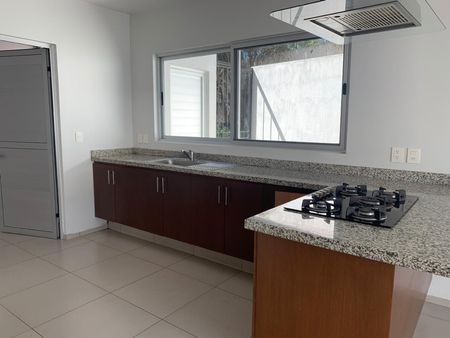 Cuenta con cajón de estacionamiento para 3 autos, una recámara en planta baja o estudio, ya que cuenta con baño completo, amplios espacios en sala y comedor, la cocina es integral con barra desayunadora, cuarto de servicio con baño completo, área de lavandería.