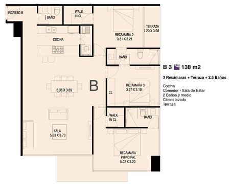Cuenta con 3 recamaras , la principal con vestidor y baño completo,las recamaras secundarias comparten baño, hermosa vista a la ciudad