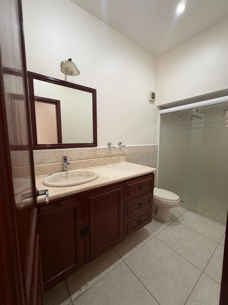 Recámara en planta baja con baño completo, ideal para visitas o personas mayores.