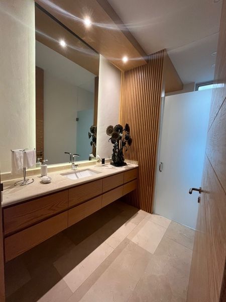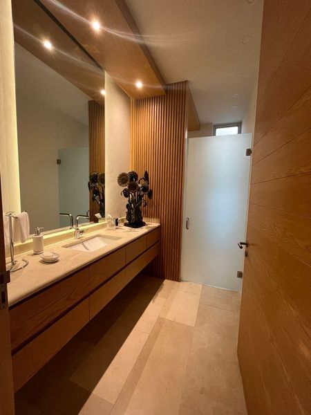 El diseño arquitectónico de la propiedad es cálido y muy luminoso, ventas y puertas de piso a techo, con carpintería en madera de encino.